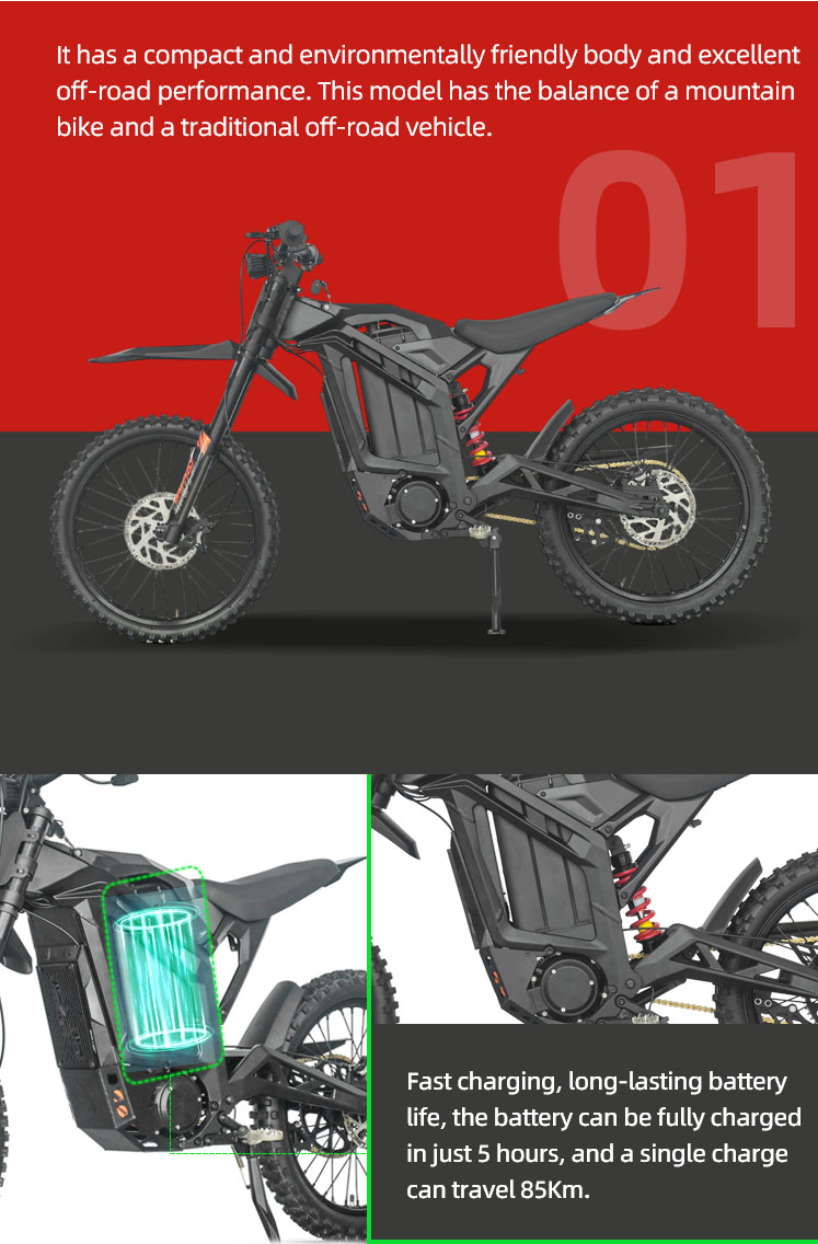 Our electric dirt bike is a powerful off-road motorcycle driven by an electric motor, offering instant torque and smooth acceleration.